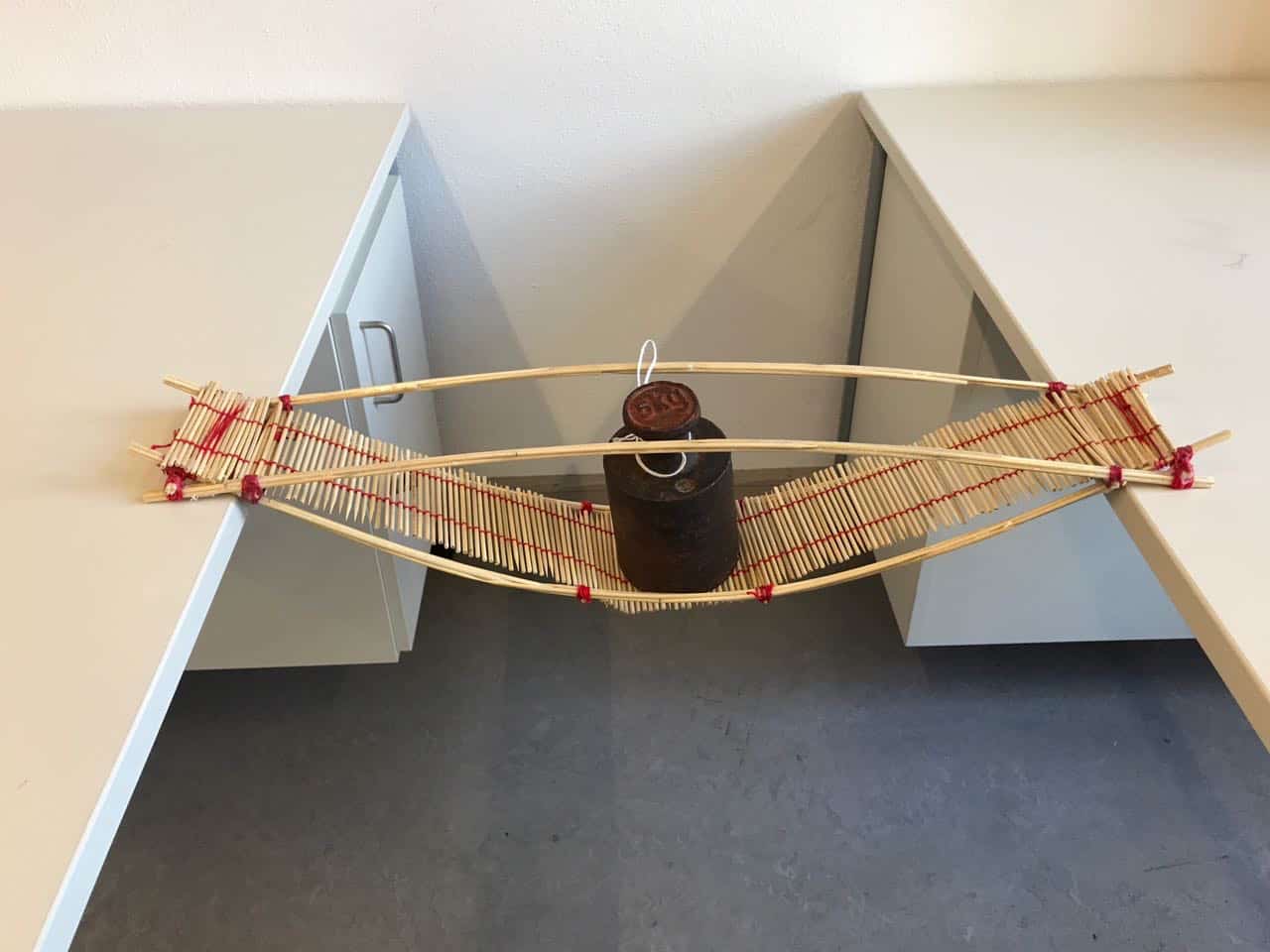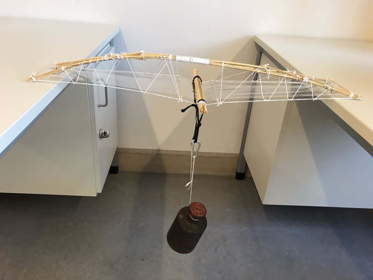 - Vor Beginn des Belastungstests wiegt eine unabhängige Jury die eingereichten Brücken und prüft sie bezüglich der Einhaltung der beschriebenen Wettbewerbsbedingungen. Die Brücke mit dem besten Belastungs-/Eigengewicht – Wert gewinnt den Wettbewerb!