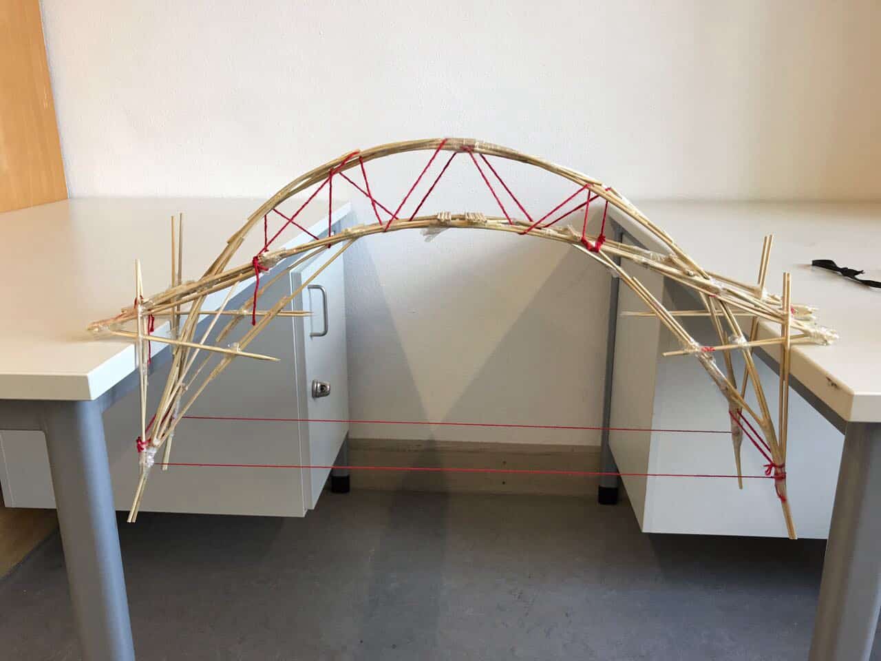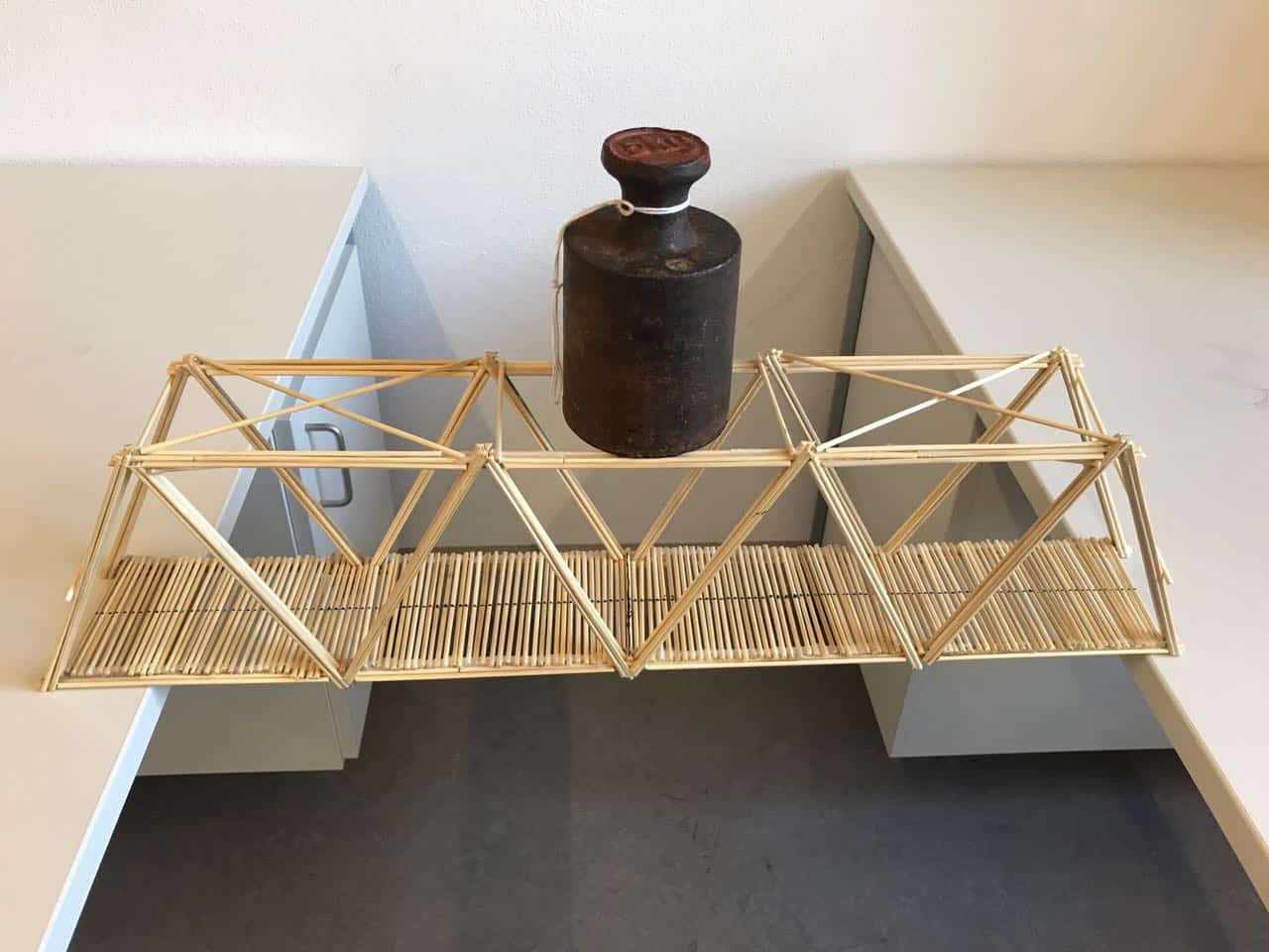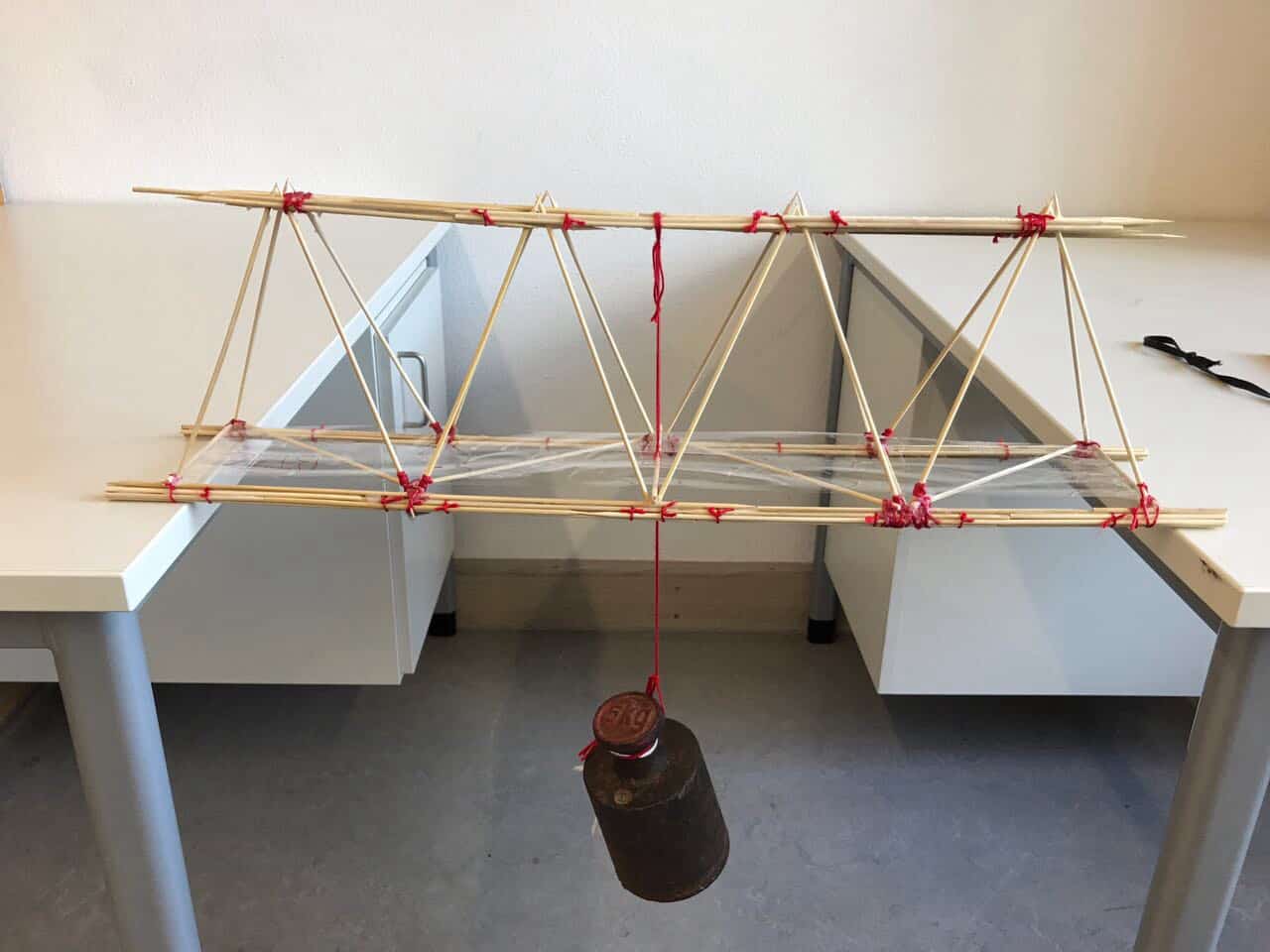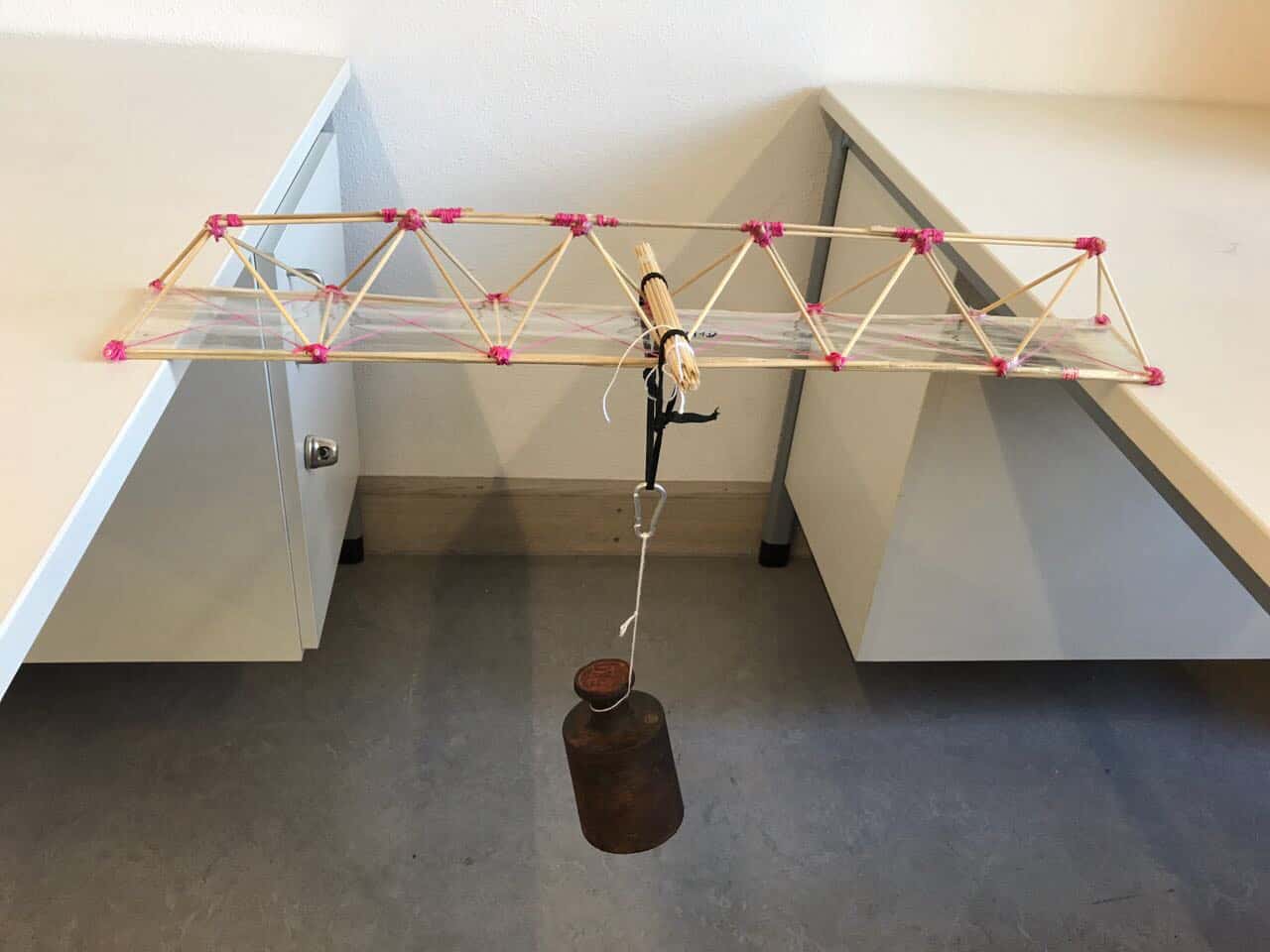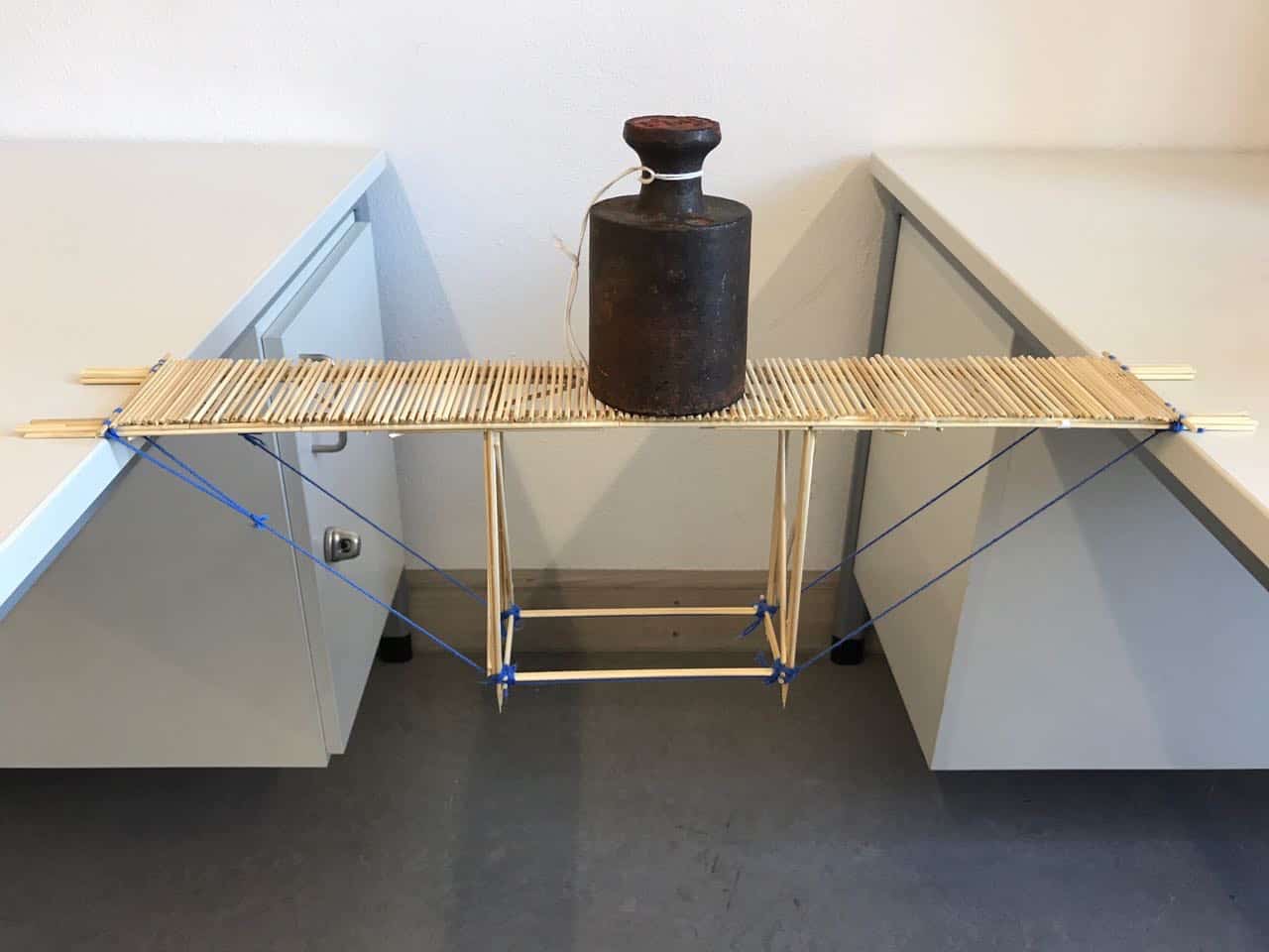 - Konstruktion und Bau einer Brücke aus Holzstäbchen, Holzleim, Klebefilm und Faden, deren Gewicht möglichst gering sein soll.