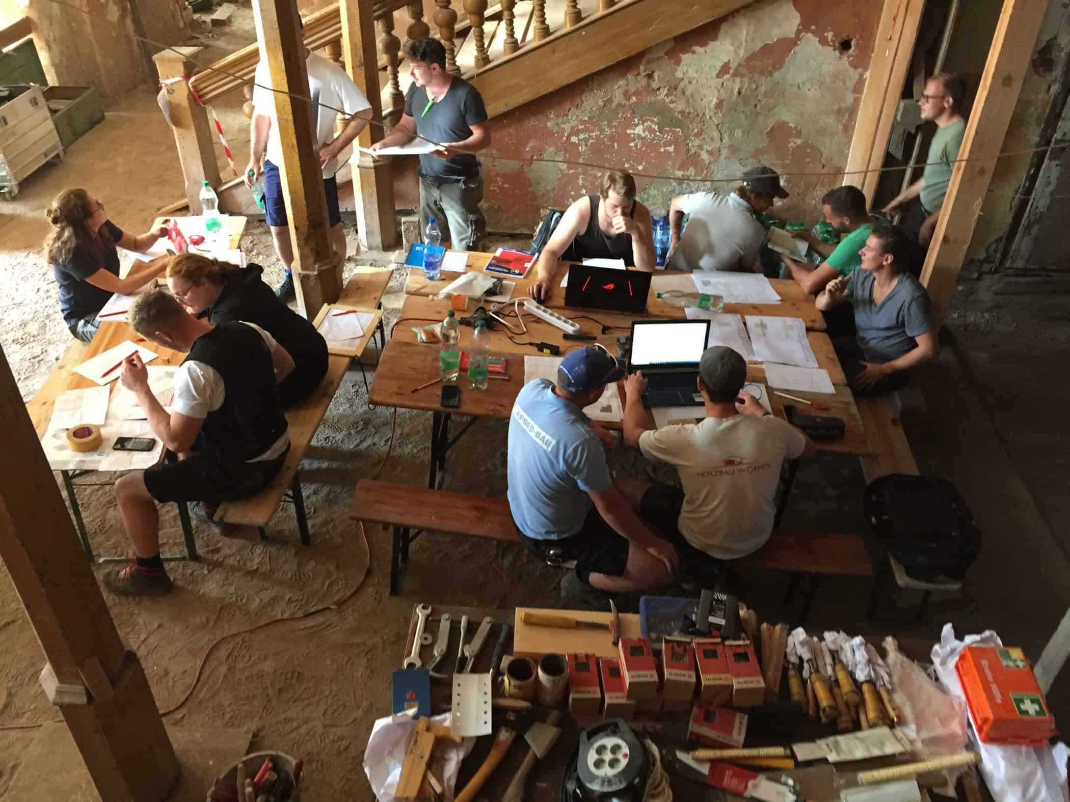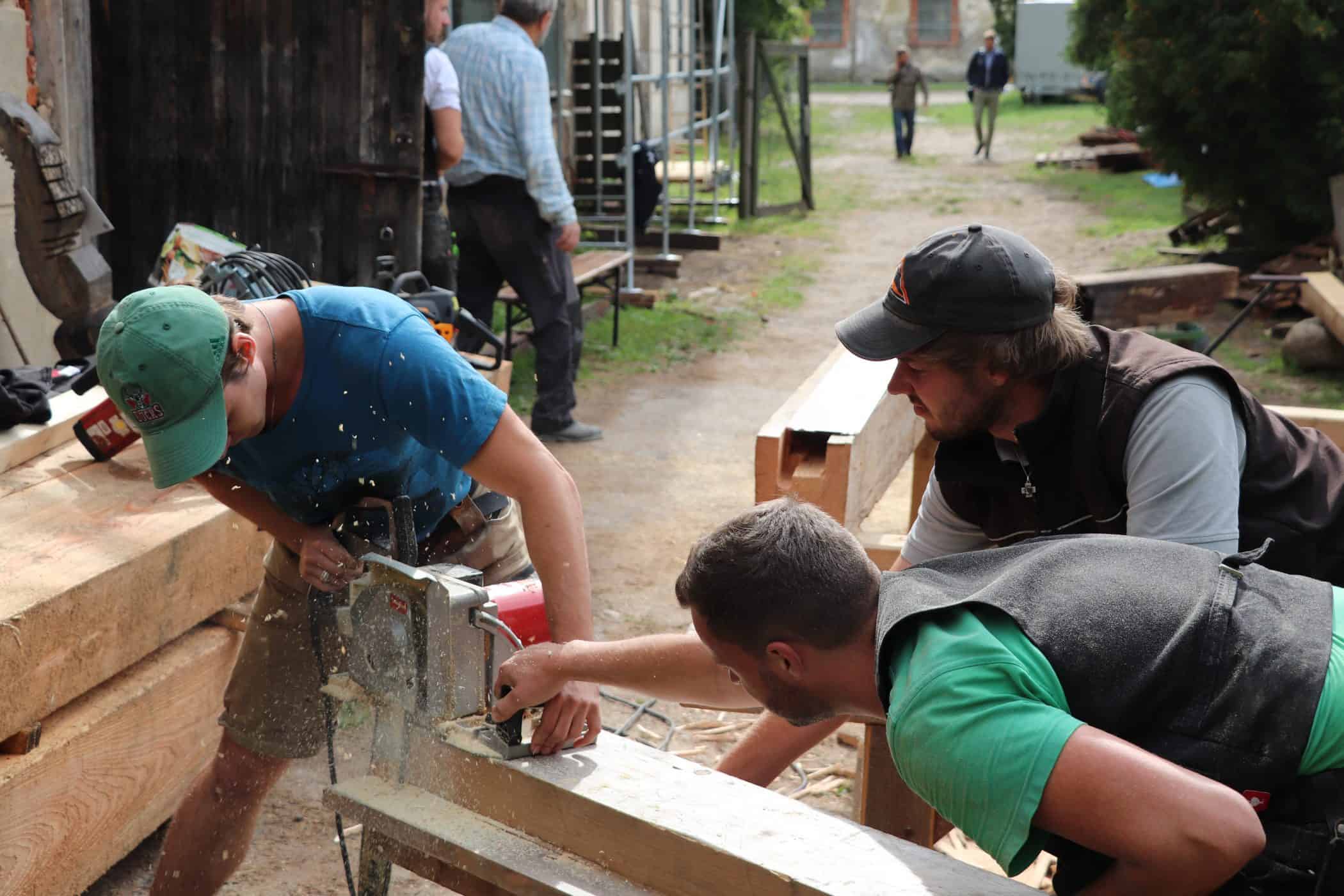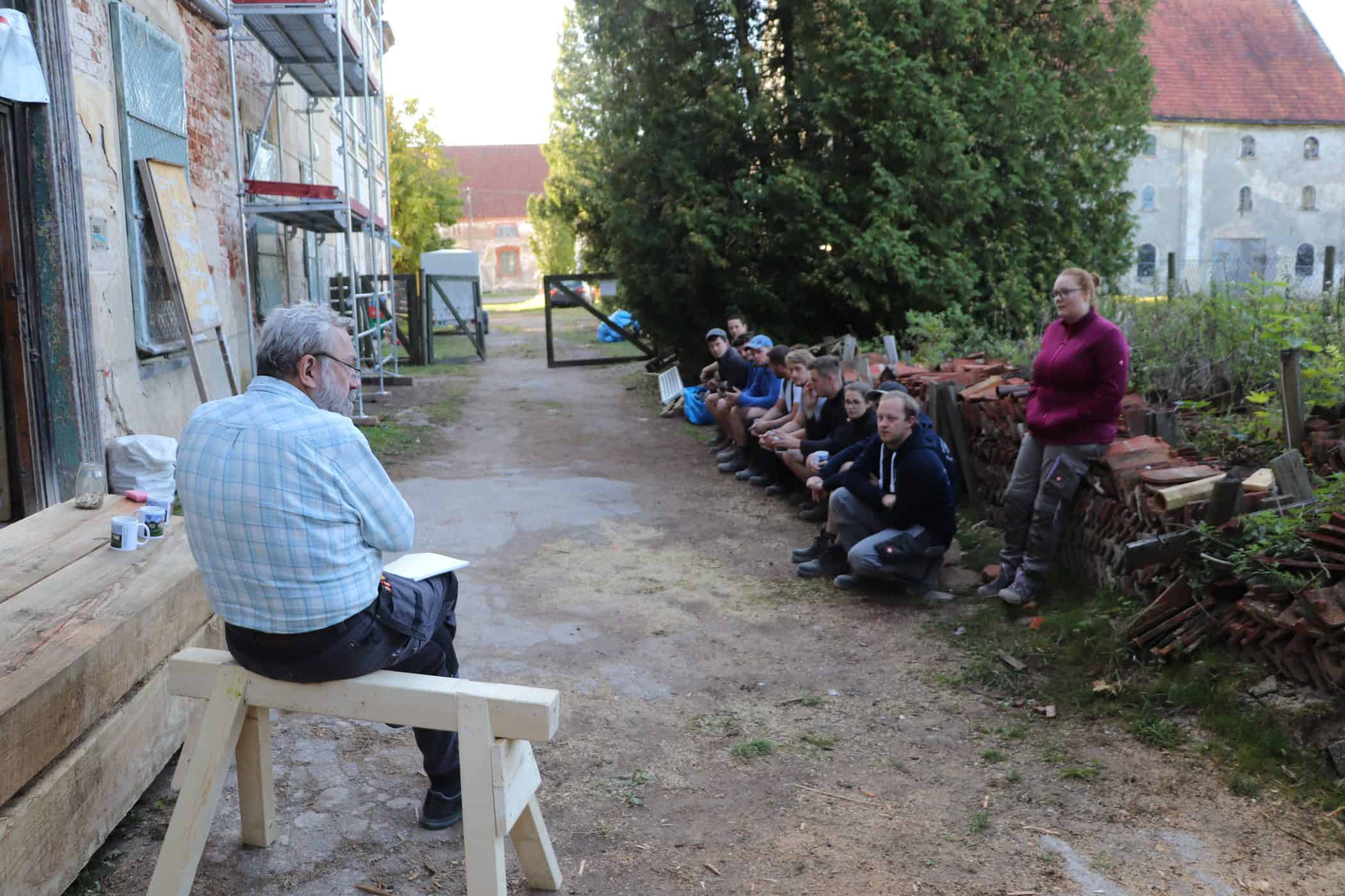 Auf der BAU 2017 wurden wir von Professor Jäger von der TU Dresden angesprochen, ob wir uns nicht an der Instandsetzung von Schloss Steinort/Sztynort beteiligen wollen. Dieser geschichtsträchtige Ort (Schlossherr Graf von Lehndorff war einer der Widerstandskämpfer, die am Attentat auf Adolf Hitler am 20. Juli 1944 beteiligt waren), ca. 15 km von der “Wolfsschanze” bei Rastenburg/Kętrzyn entfernt, weckte nicht nur aus historischen Gründen unser Interesse. Nach einer Klassenexkursion im Juli 2018 und weiteren Sondierungsgesprächen vor Ort im Mai 2019 wurde der Entschluss gefasst, einen ersten Lernaufenthalt im Rahmen eines “Erasmus+”-Mobilitätsprojekts im September 2019 zu organisieren. Und so waren wir dann tatsächlich mit 15 Bautechniker*innen verschiedener Berufsbildungen für 17 Tage hier!