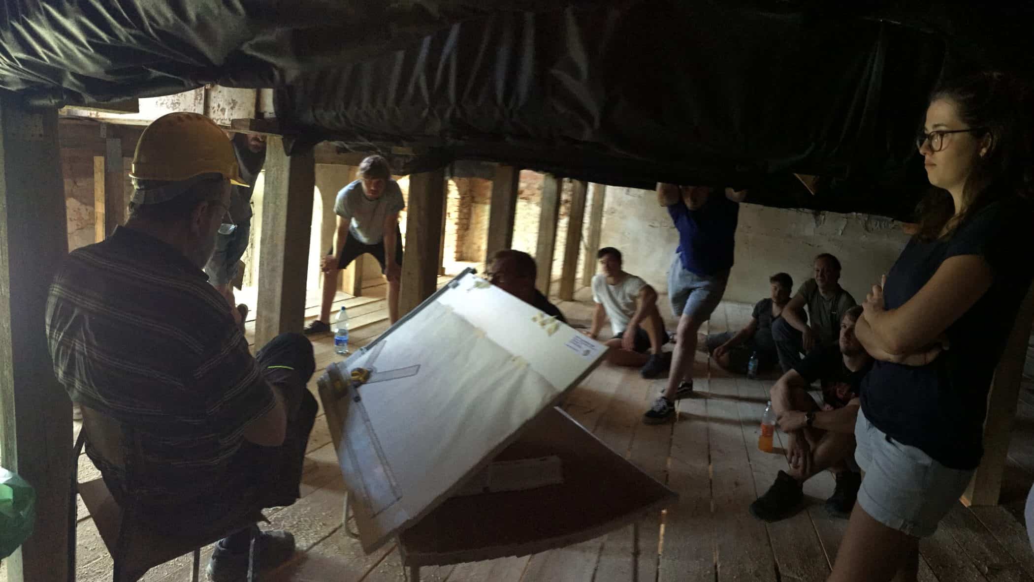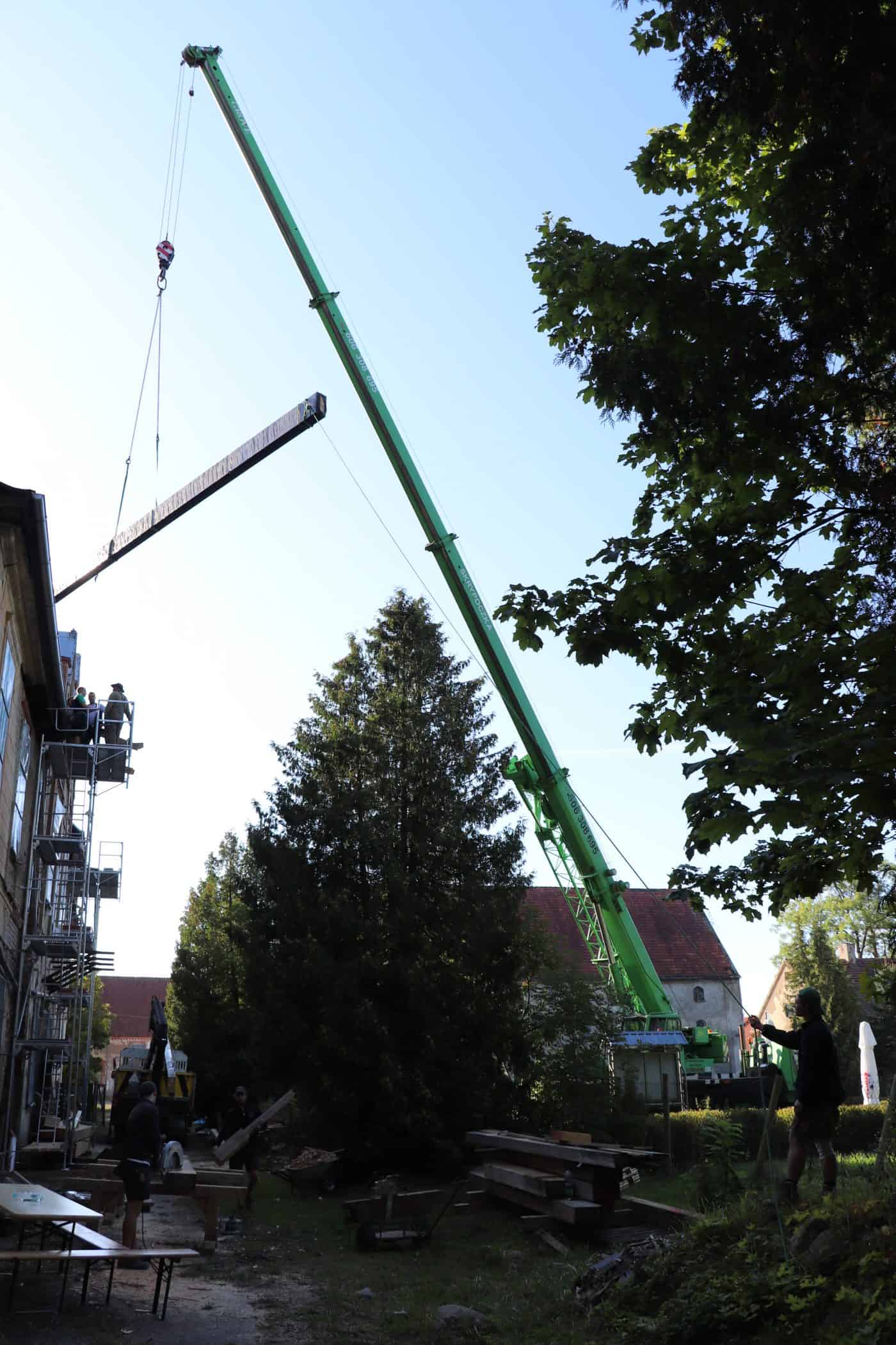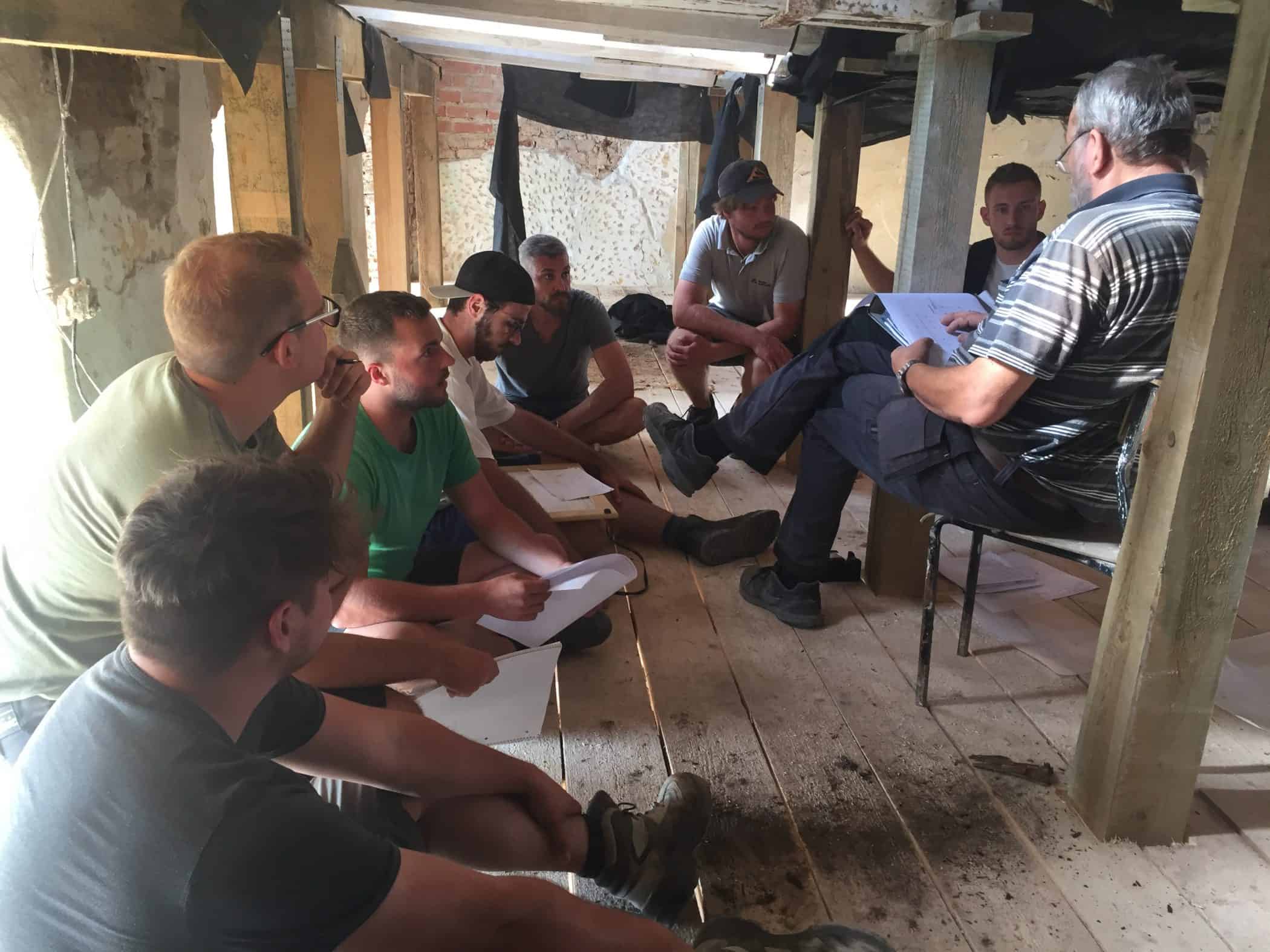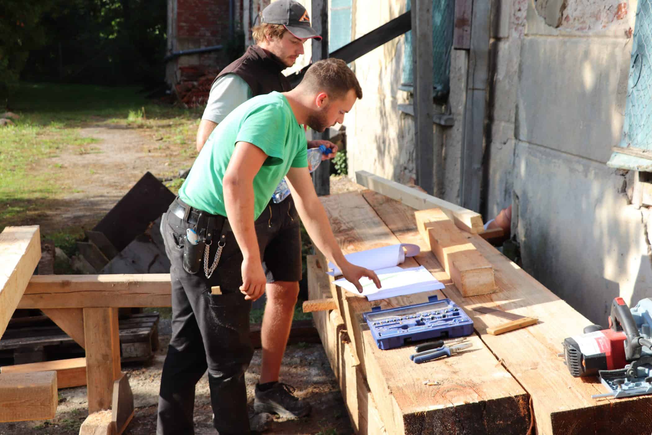 Auf der BAU 2017 wurden wir von Professor Jäger von der TU Dresden angesprochen, ob wir uns nicht an der Instandsetzung von Schloss Steinort/Sztynort beteiligen wollen. Dieser geschichtsträchtige Ort (Schlossherr Graf von Lehndorff war einer der Widerstandskämpfer, die am Attentat auf Adolf Hitler am 20. Juli 1944 beteiligt waren), ca. 15 km von der “Wolfsschanze” bei Rastenburg/Kętrzyn entfernt, weckte nicht nur aus historischen Gründen unser Interesse. Nach einer Klassenexkursion im Juli 2018 und weiteren Sondierungsgesprächen vor Ort im Mai 2019 wurde der Entschluss gefasst, einen ersten Lernaufenthalt im Rahmen eines “Erasmus+”-Mobilitätsprojekts im September 2019 zu organisieren. Und so waren wir dann tatsächlich mit 15 Bautechniker*innen verschiedener Berufsbildungen für 17 Tage hier!