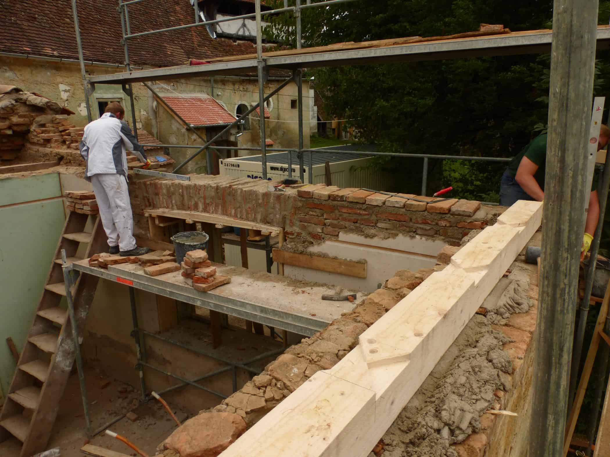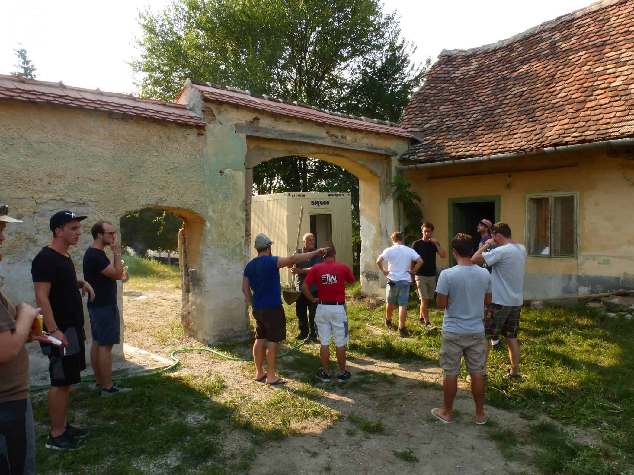 Seit 2009 engagieren wir uns für den Erhalt bzw. die Sanierung zweier Kirchenburgen im Kaltbachtal in Siebenbürgen in Rumänien. Dieses Jahr waren die Kollegen Bernd Drumm, Yvonne Galdys und Michael Nicklas) mit Bautechniker*innen in Martinsdorf/Metis in Siebenbürgen/Rumänien im Rahmen des EU-Mobilitätsprogramms “Erasmus+” vor Ort. Die größten Maßnahmen waren dieses Jahr die Neuerrichtung der Giebelwand, die Neuerrichtung des Dachstuhls und ein neues Eingangstor nach Vorbildern in der Region!