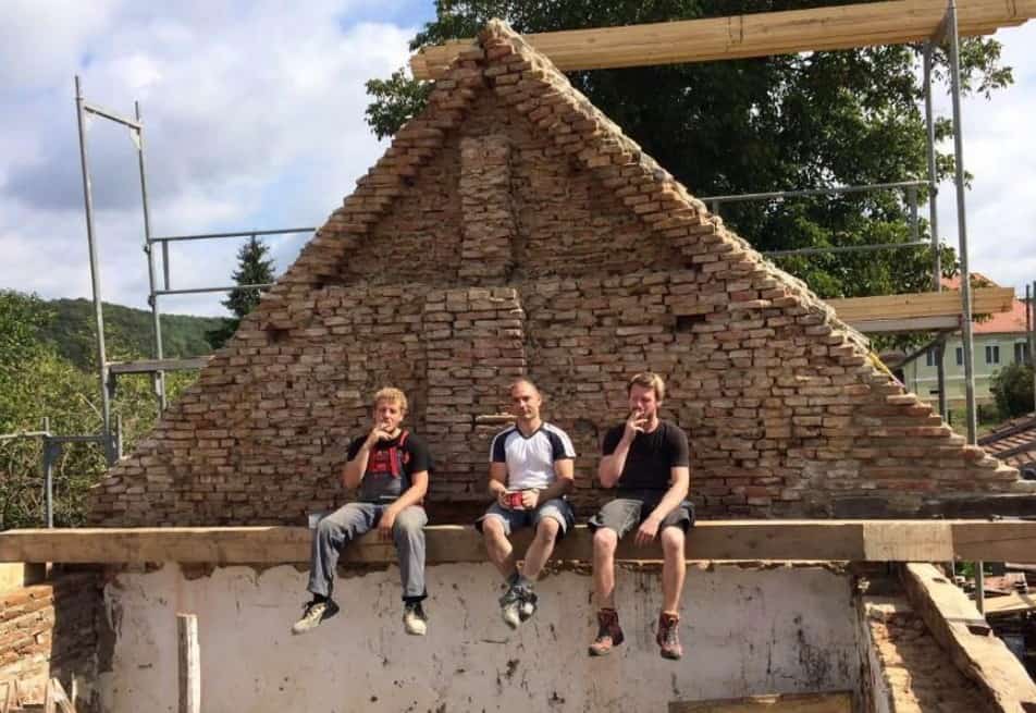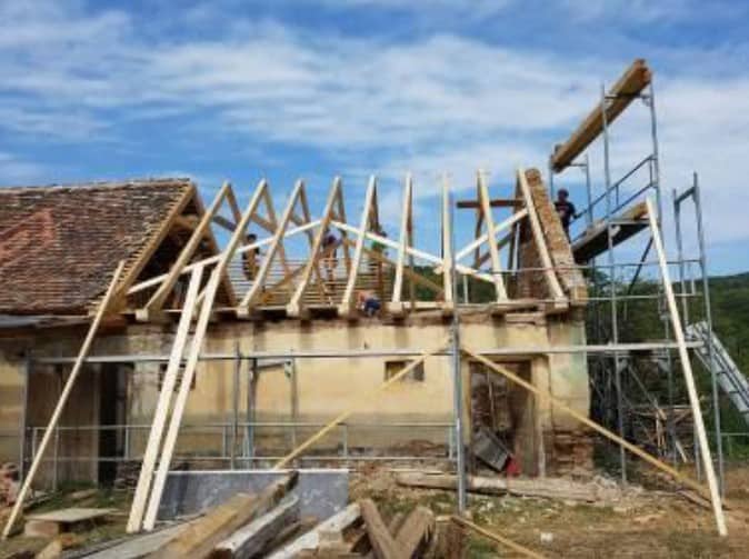 Seit 2010 genießen wir nicht nur die kulturelle und landschaftliche Vielfalt Siebenbürgens, sondern arbeiten in Rumänien in der Nähe von Hermannstadt/Sibiu auch im Rahmen eines EU-Projekts mit unseren Bautechniker*innen an der Sanierung der Kirchenburg in Mardisch/Moardas bzw. am Pfarrhaus und Nebengebäude in Martinsdorf/Metis. Dieses Jahr waren wir vom 31. August bis 15. September 2017 vor Ort. Unser Hauptaugenmerk lag dieses Jahr auf der Erneuerung des letzten Drittels des Dachstuhls des Nebengebäudes sowie der Sanierung eines Teils der Kirchenmauer und anderen, kleineren Gewerken.